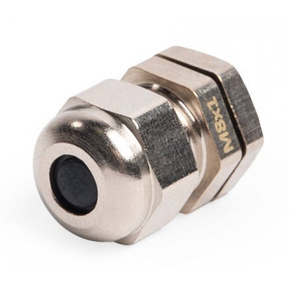 - Материал: гайка, корпус, накидная гайка: никелированная латунь, прижимная вставка: нейлон 6.6 по UL94 V2, уплотнительная вставка и кольца: неопрен