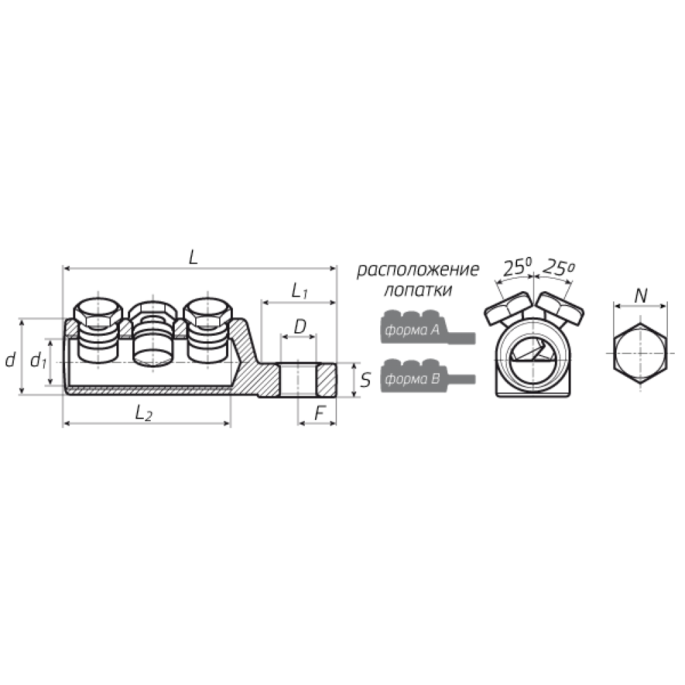 | D (мм) | L (мм) | L1 (мм) | L2 (мм) | F (мм) | S (мм) | d (мм) | d1 (мм) | N (мм) |